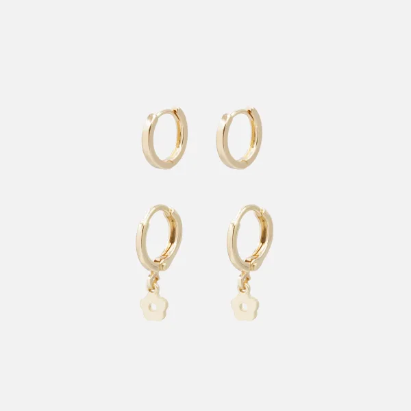 Titre : « Duo de Boucles d’Oreilles Anneaux Dorés Simples et Breloque Fleur : Élégance au Quotidien